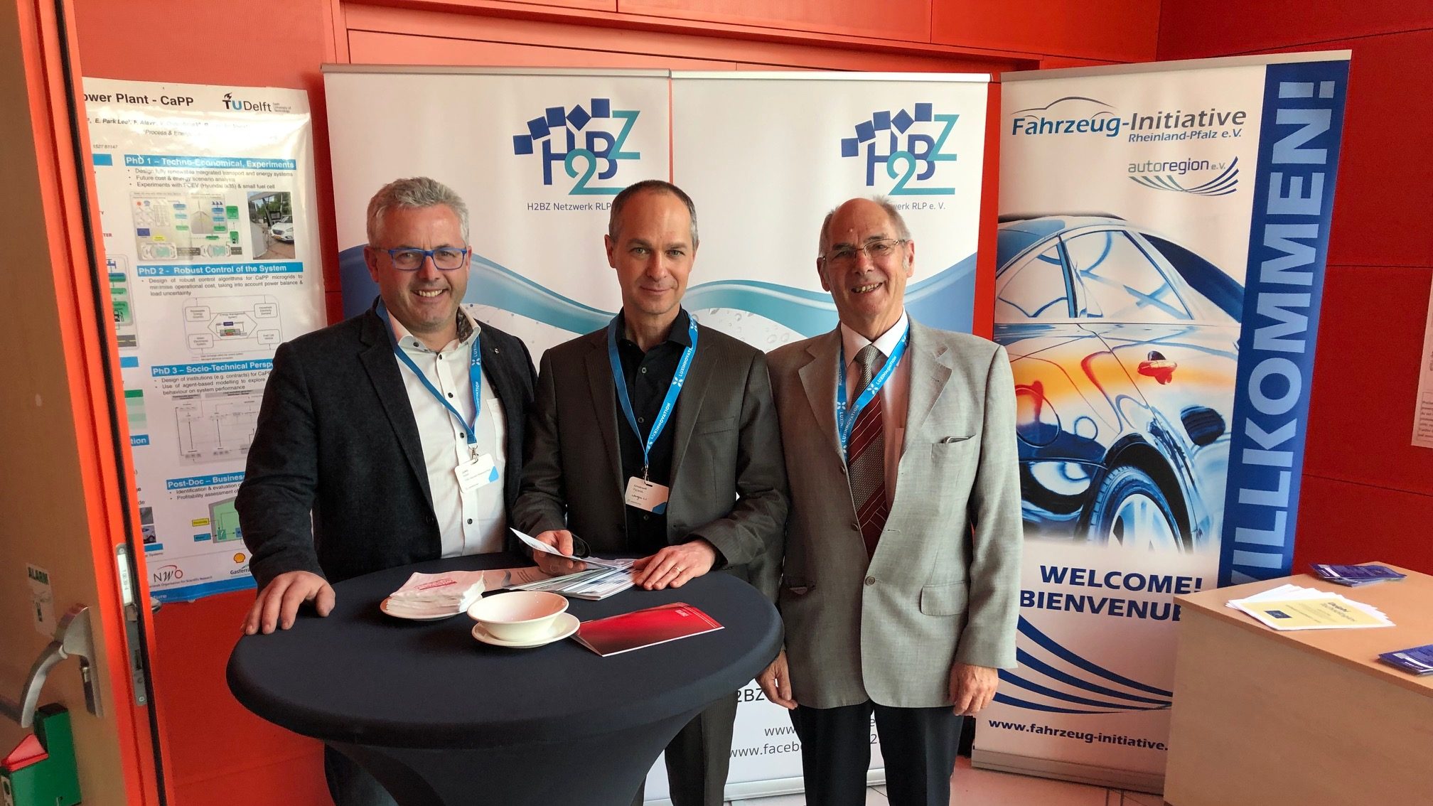 v. l. n. r.: Bürgermeister Albert Jung (Vorsitzender des H2BZ Netzwerkes RLP e.V.), Dr.-Ing. Dietrich Rodermund (Geschäftsführer der Fahrzeug-Initiative Rheinland-Pfalz e.V.) und Jürgen Hansen (Vorstandsmitglied des H2BZ Netzwerkes RLP e.V.